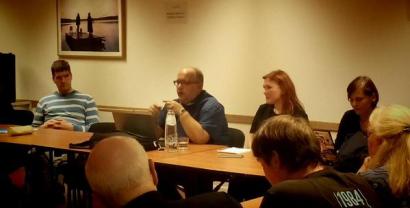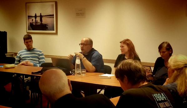 Auf Einladung von Jan-Philipp Albrecht und Reimon Michel ging die Diskussion am Montag, 19. Oktober 2015 im Europaparlament weiter. Anschließend trafen sich einige der Teilnehmenden noch mit Anna Buchta, Cornelia Ernst (die leider im Stau steckengeblieben war und durch ihren Assistenten Lorenz Krämer ersetzt wurde) und Andreas Schwab.