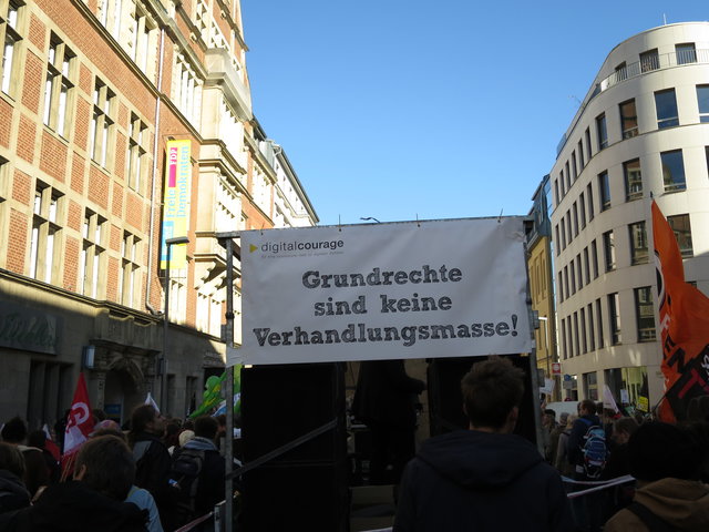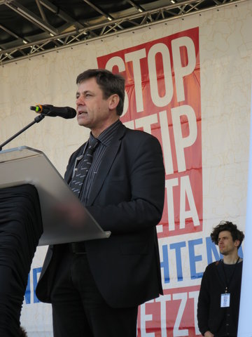 Schon lange vor Beginn der Demonstration war der Sammelplatz vor dem Hauptbahnhof überfüllt und immer weitere Menschen kamen dazu. Züge konnten im Hauptbahnhof nicht mehr halten und es bildeten sich spontan mehrere Demorouten, um den Endpunkt, die Siegessäule, überhaupt erreichen zu können. Ein toller Erfolg für die Zivilgesellschaft und ein deutliches Zeichen gegen Geheimverhandlungen und eine Politik der Alternativlosigkeit.