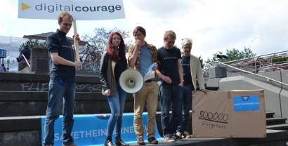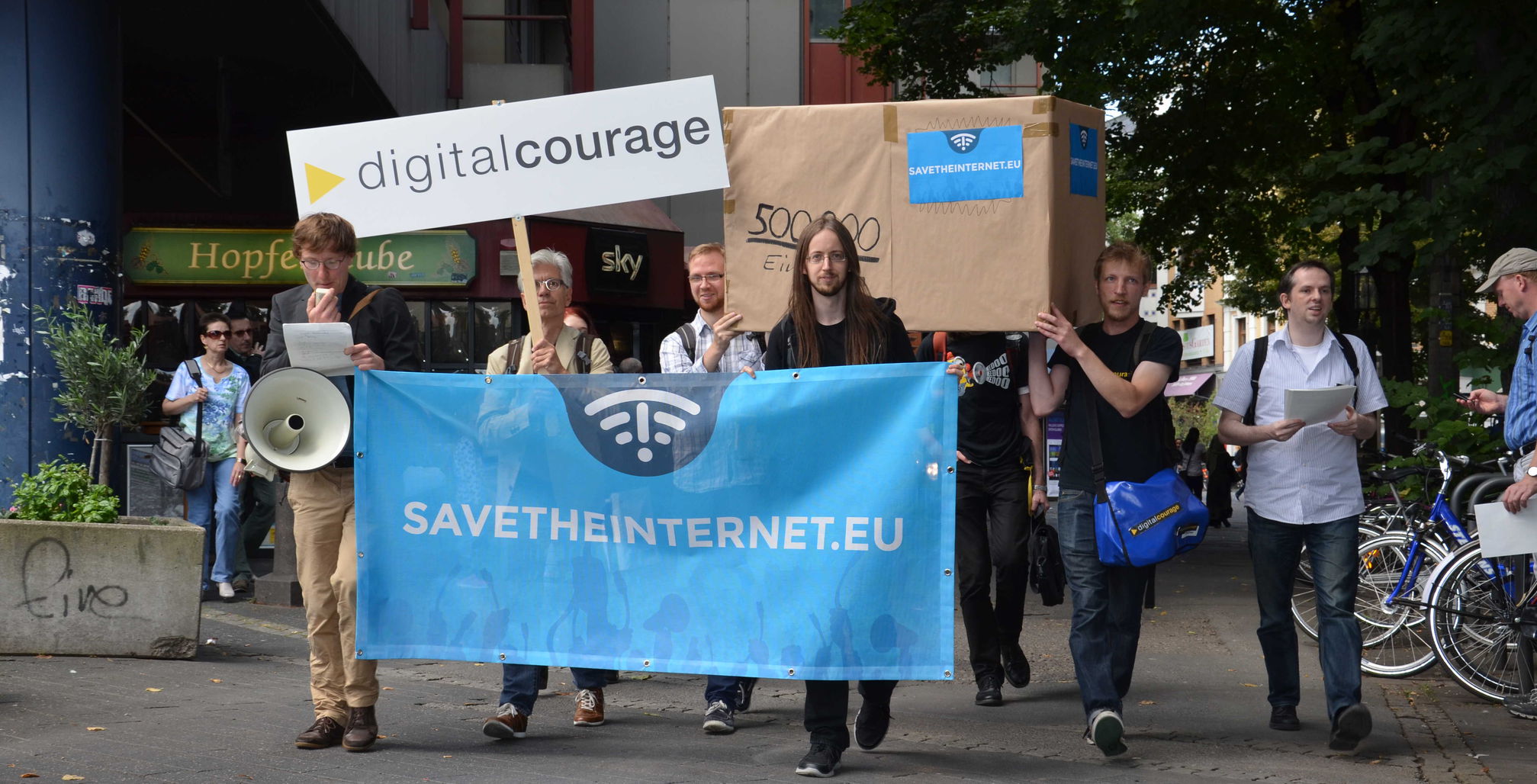 Am Dienstag, 9. August 2016, haben Aktivist.innen von [„Save the Internet“](https://www.savetheinternet.eu/de/), Digitalcourage, StopWatchingUs Köln und dem AK Vorrat ein riesiges Paket durch Bonn getragen. Darin waren mehr als 500.000 Eingaben für ein faires Internet, die die Bundesnetzagentur entgegengenommen hat.