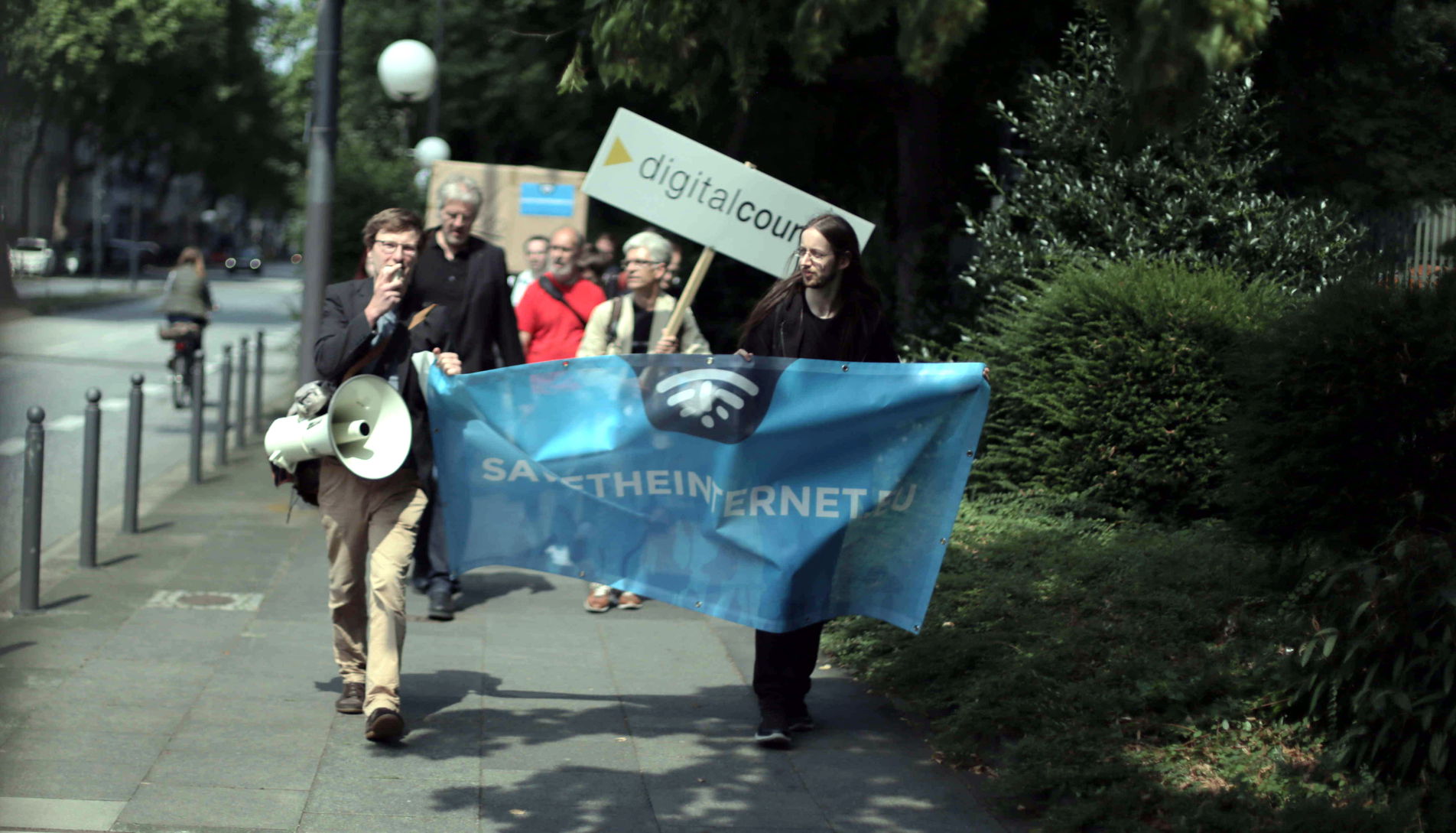 Auf Händen haben die Aktivist.innen das riesige Paket durch die Bonner Innenstadt direkt in die Bundesnetzagentur getragen. Direkt vor dem Eingang haben sie dann mit Megaphon einen offenen Brief von Tim Berners-Lee, WWW-Erfinder, Barbara van Schewick, Professorin an der Universität Stanford, und Lawrence Lessig, Creative-Commons-Gründer vorgelesen. Die Forderungen sind klar: keine Überholspuren, kein „Zero Rating“, keine Diskriminierung von Daten und kein Zwei Klassen-Netz. Netzneutralität fordern zusammen mit 500.000 Bürgerinnen und Bürgern auch Bürgerrechtsorganisationen, Verbraucherschützer, Startups und Technologieunternehmen, Wissenschaftler.innen, die öffentlich-rechtlichen Rundfunkanstalten, der deutschen Journalistenverband und der Verband deutscher Zeitungsverleger.