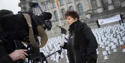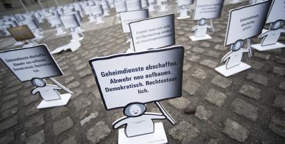 Digitalcourage und die Internationale Liga für Menschenrechte haben am Freitag, 21. Oktober 2016 vor dem Deutschen Bundestag in Berlin die Abschaffung der deutschen Geheimdienste gefordert – Fotos von Stefanie Loos, zur Verwendung unter der Lizenz CC BY SA 3.0.