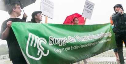 Wir haben am 29. Juni, um fünf vor zwölf, mit einem großen Bündnis vor dem Bundestag protestiert, um die Vorratsdatenspeicherung endgültig zu versenken.