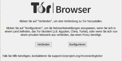 Wenn Sie Tor-Browser zum ersten Mal starten, sollten Sie bald folgendes Fenster sehen: