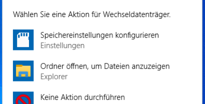 Es ist gut möglich, dass Sie an Stelle des von uns gezeigten „E:“ einen anderen Buchstaben sehen. Lassen Sie sich davon nicht verwirren. Klicken Sie das Popup-Fenster an. Anschließend sollten das folgende Auswahlfenster sehen: