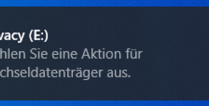 Nach dem Einstecken des USB-Sticks solten sie auf der rechten Seite des Bildschirms folgendendes Popup-Fenster sehen: