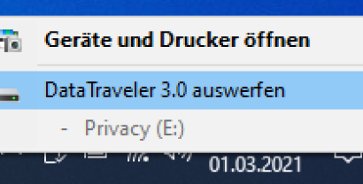 Dort können Sie dann das Laufwerk Privacy klicken, um es sicher zu entfernen. Auch hier kann der Buchstabe des Laufwerks und der Name vom Bild abweichen, je nach Version des PrivacyDongles.