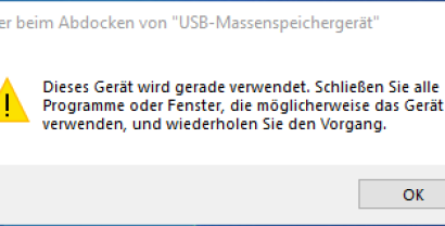... ziehen Sie den Stick nicht ab! Klicken Sie auf „OK“ und warten Sie einen Moment und probieren dann erneut, den Stick „sicher zu entfernen“.